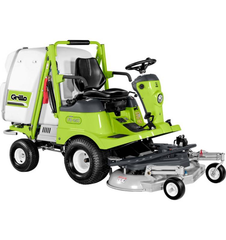 Ultra-polyvalente et conçue pour les grandes surfaces, cette autoportée à coupe frontale Grillo FD 450 dispose d’un bac de ramassage 450 L et d’un système de vidange hydraulique avec bennage jusqu’à 170 cm de hauteur. Grâce à son plateau de coupe 113 cm à 3 lames - positionné à l’avant pour une parfaite visibilité -, sa transmission hydrostatique à pédale et son rayon de braquage réduit à 30 cm, elle convient aussi bien aux usages professionnels qu’aux terrains exigeants.